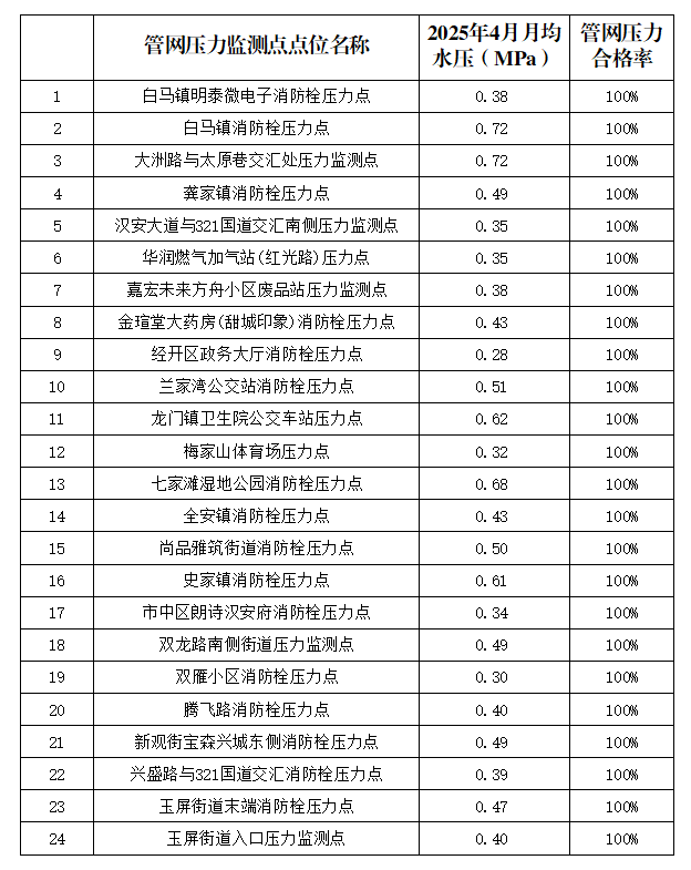 內江市水務(wù)有限責任公司2025年4月管網(wǎng)壓力月報