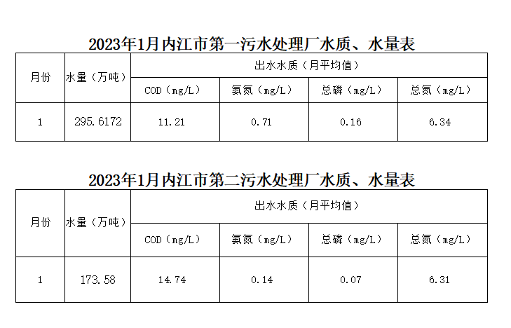 內江市污水處理有限責任公司2023年1月水量、水質(zhì)情況