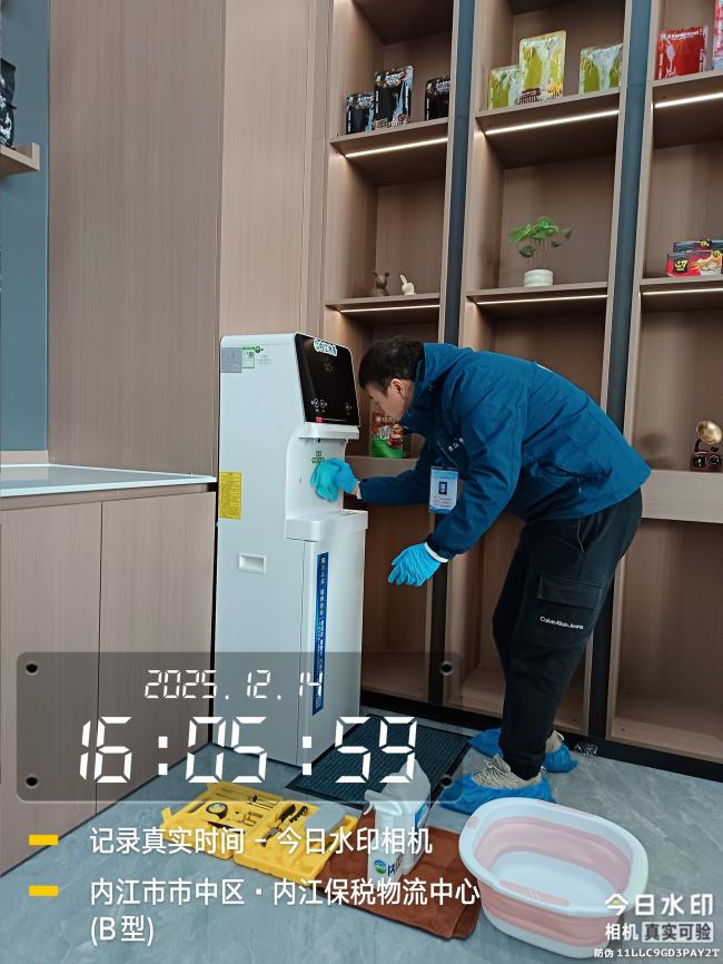 服務(wù)過程中,工作人員嚴(yán)格遵循標(biāo)準(zhǔn)化流程,安全拆卸舊濾芯并規(guī)范安裝新濾芯,確保設(shè)備運(yùn)行穩(wěn)定。隨后,對新濾芯外殼及直飲機(jī)機(jī)身、按鍵、出水口等高頻接觸部位進(jìn)行全面清潔與消毒,杜絕二次污染,筑牢衛(wèi)生安全防線。此外,工作人員主動與用戶進(jìn)行面對面交流,詳細(xì)介紹日常使用規(guī)范與注意事項(xiàng),收集用水需求并耐心解答水質(zhì)與設(shè)備使用相關(guān)問題,從而實(shí)現(xiàn)服務(wù)閉環(huán)。
